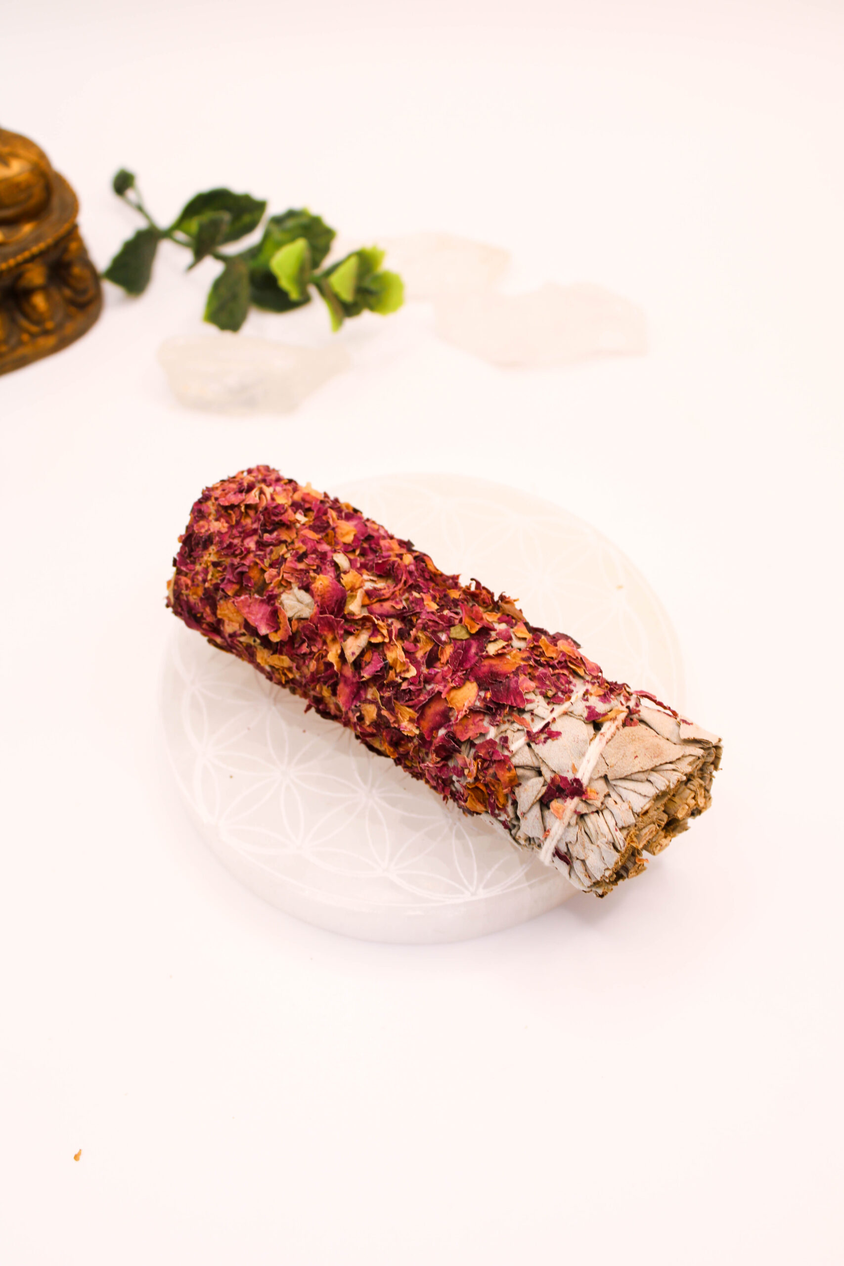 Material: Salvia Blanca y pétalos de rosas secados al sol, de cultivo sostenible.