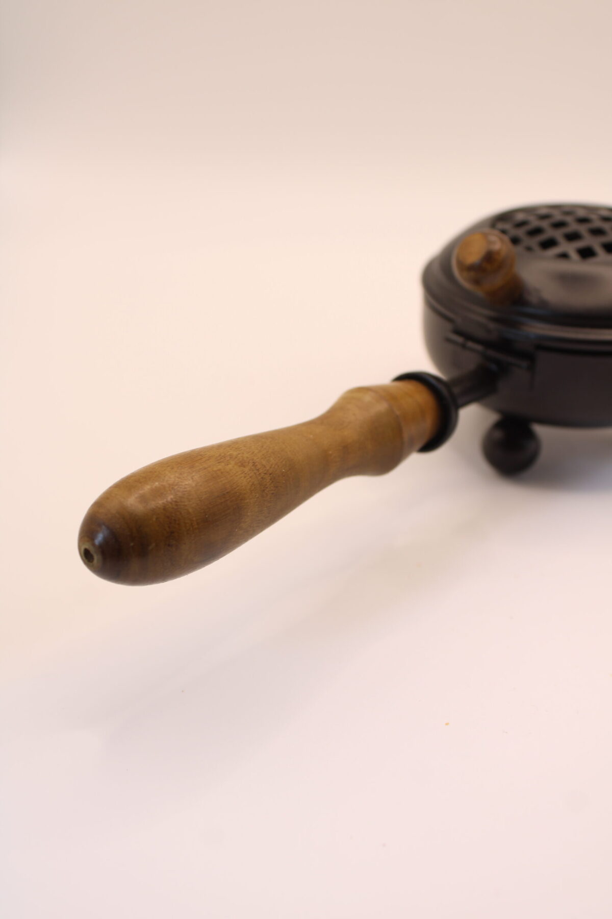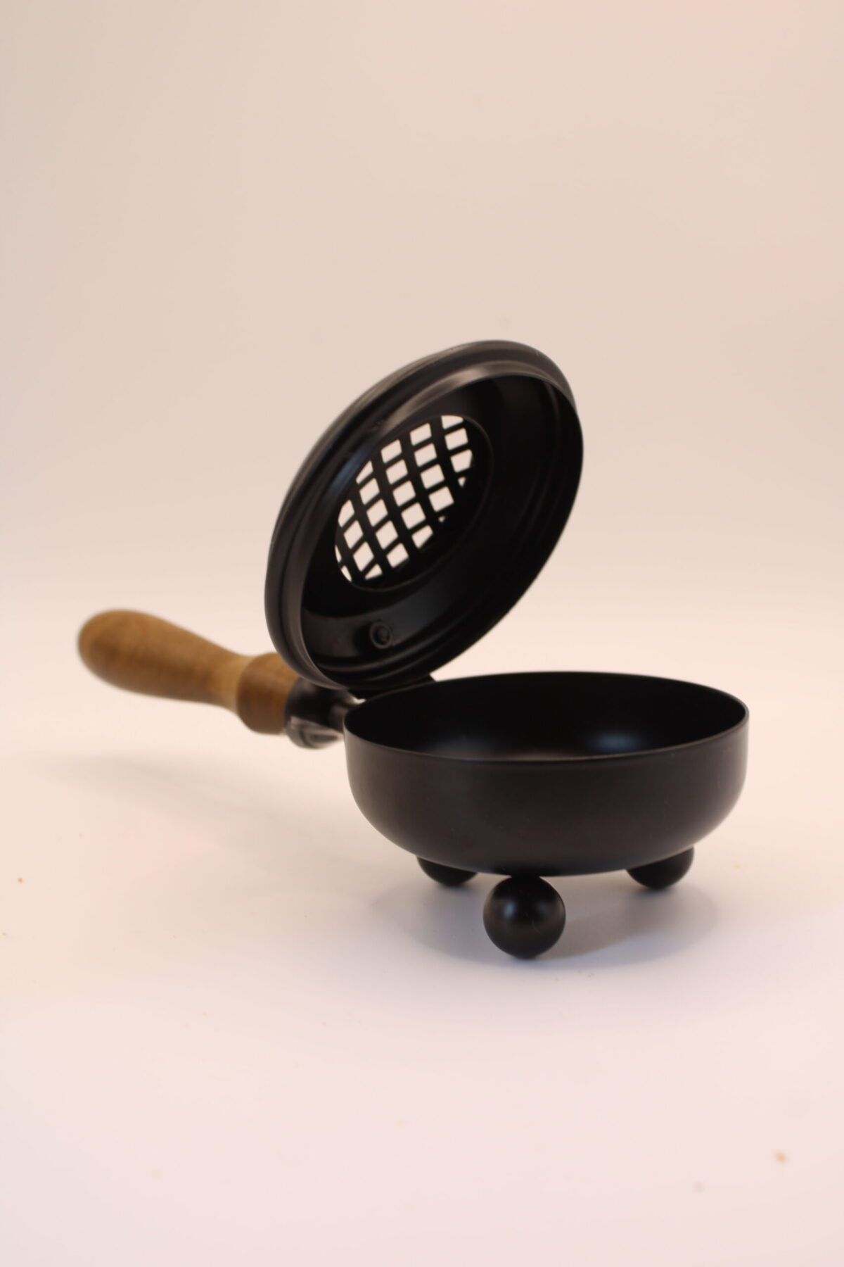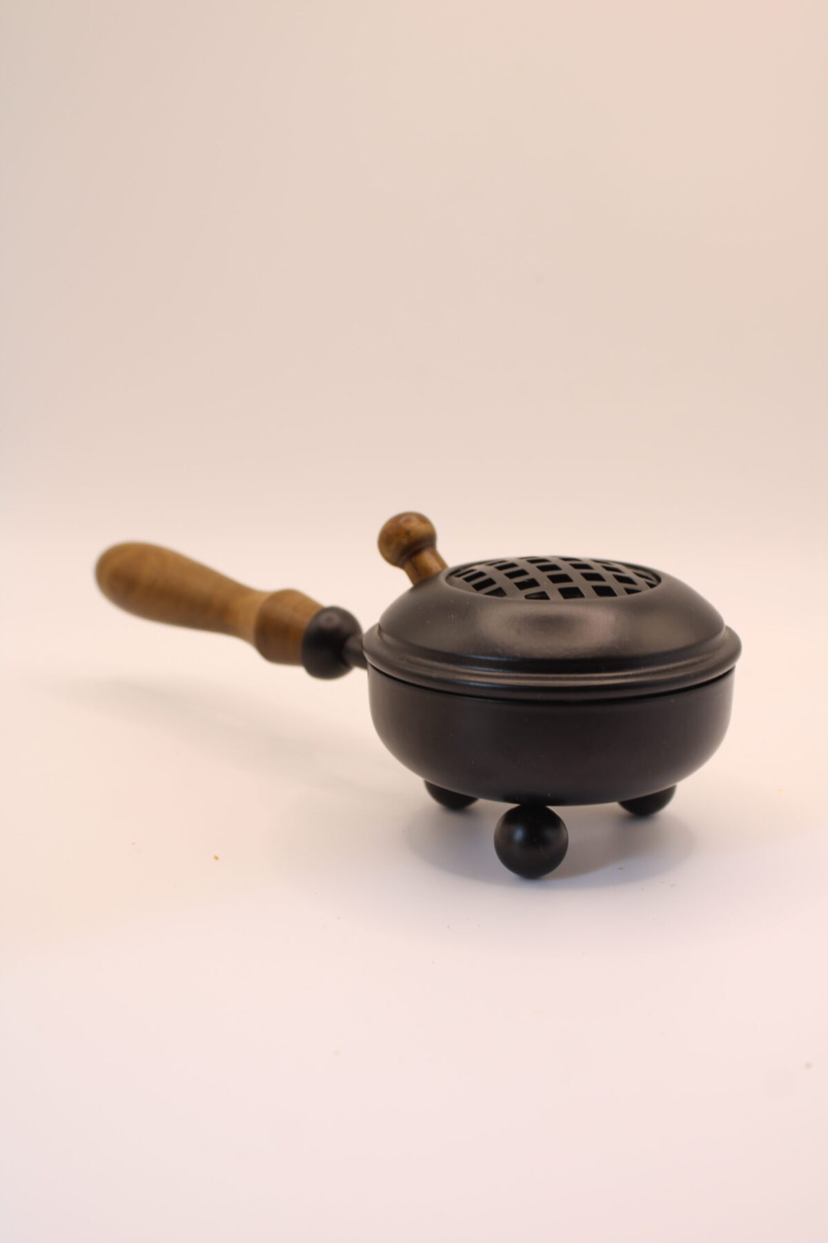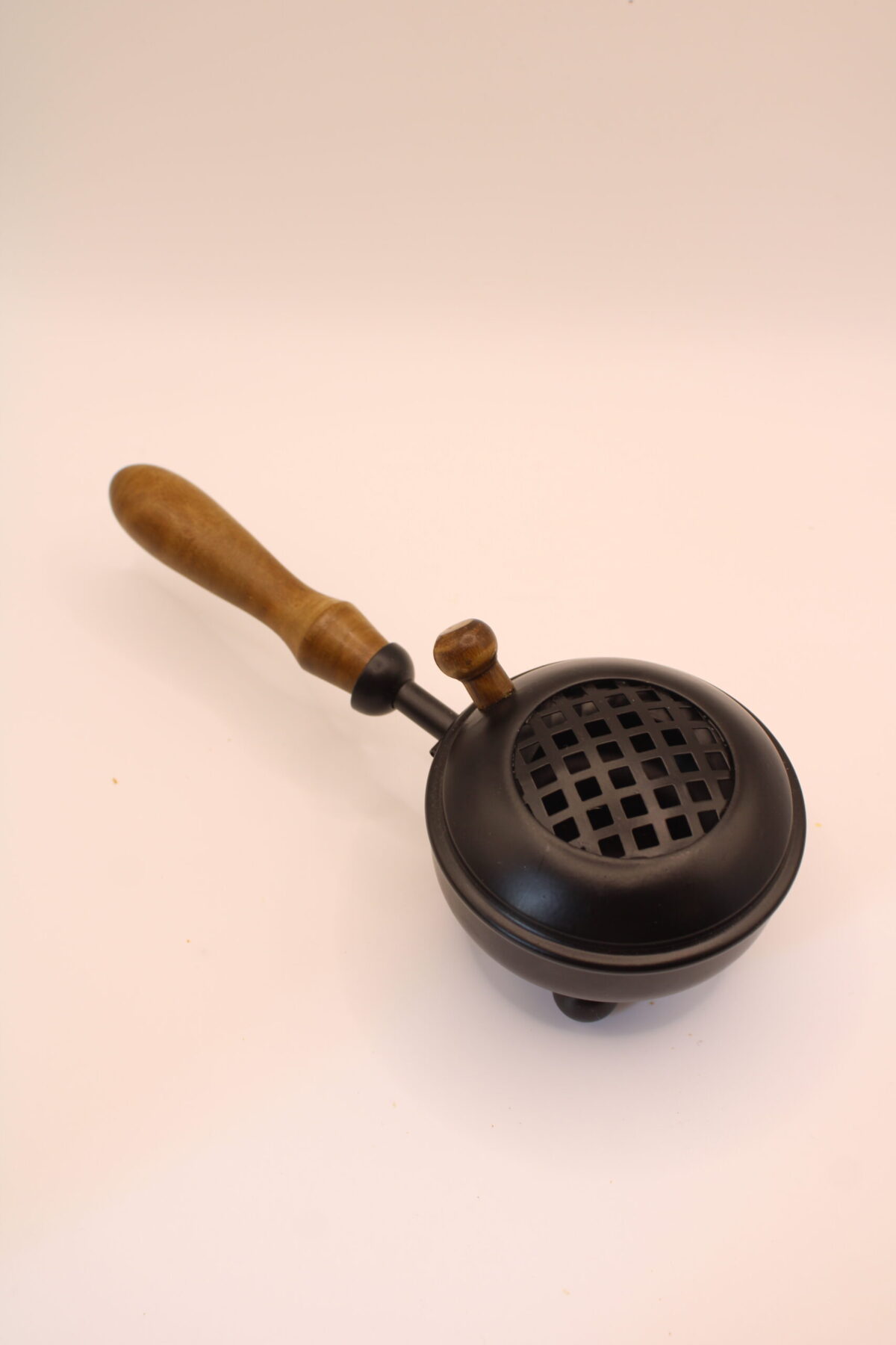 Con unas medidas de 10 x 9 x 21 cm, el Brasero de Metal Negro destaca por su diseño compacto y práctico, ideal tanto para uso en el hogar como en espacios de trabajo energético. Su estructura metálica resistente incluye una tapa perforada que permite la correcta ventilación del humo, facilitando una combustión adecuada y segura. El mango de madera aporta un toque cálido y natural, además de permitir manipularlo con comodidad sin riesgo de quemaduras.