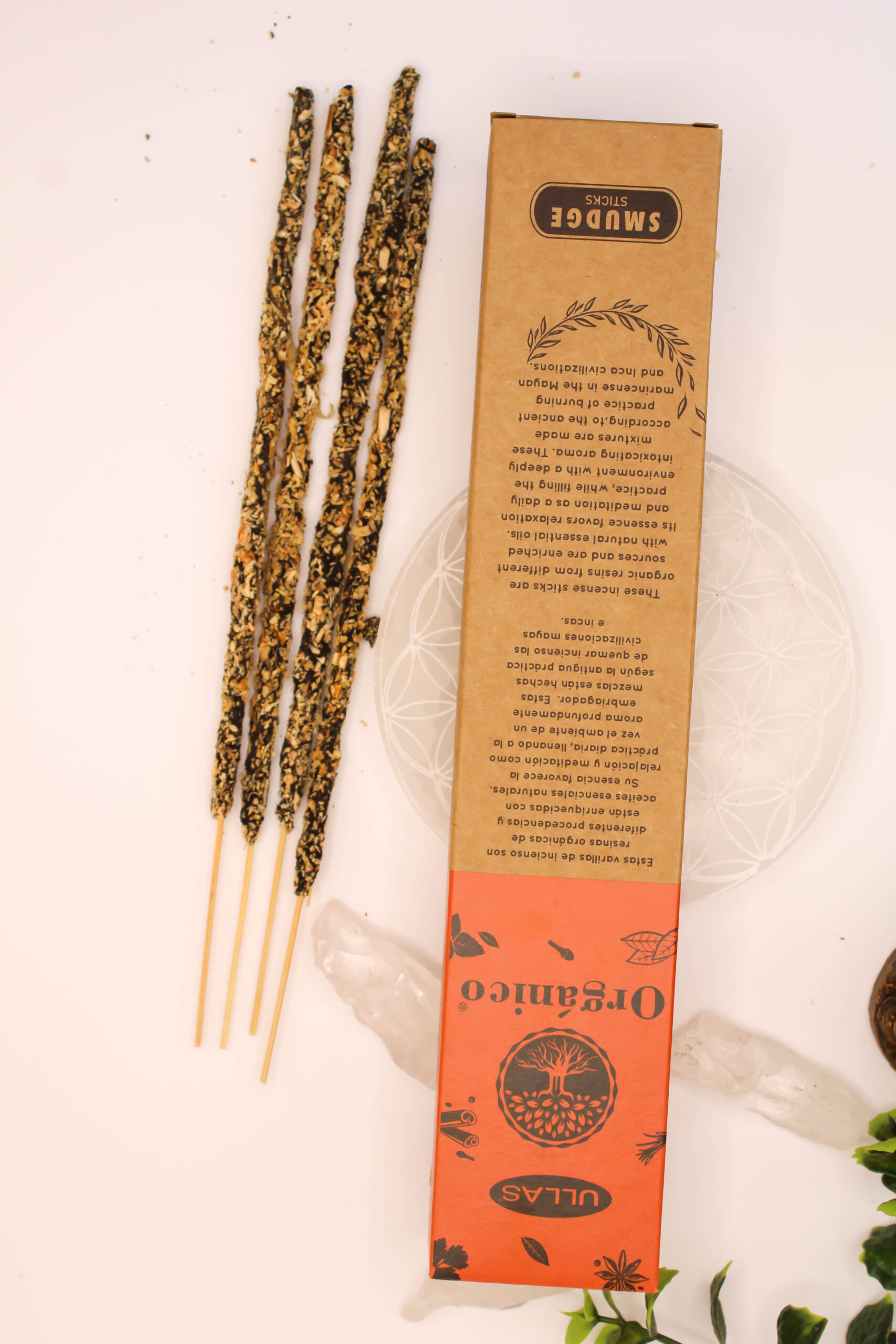 Incienso Ullas Orgánico Canela con aroma cálido e intenso. Ideal para atraer abundancia, activar la energía vital y proteger el espacio.