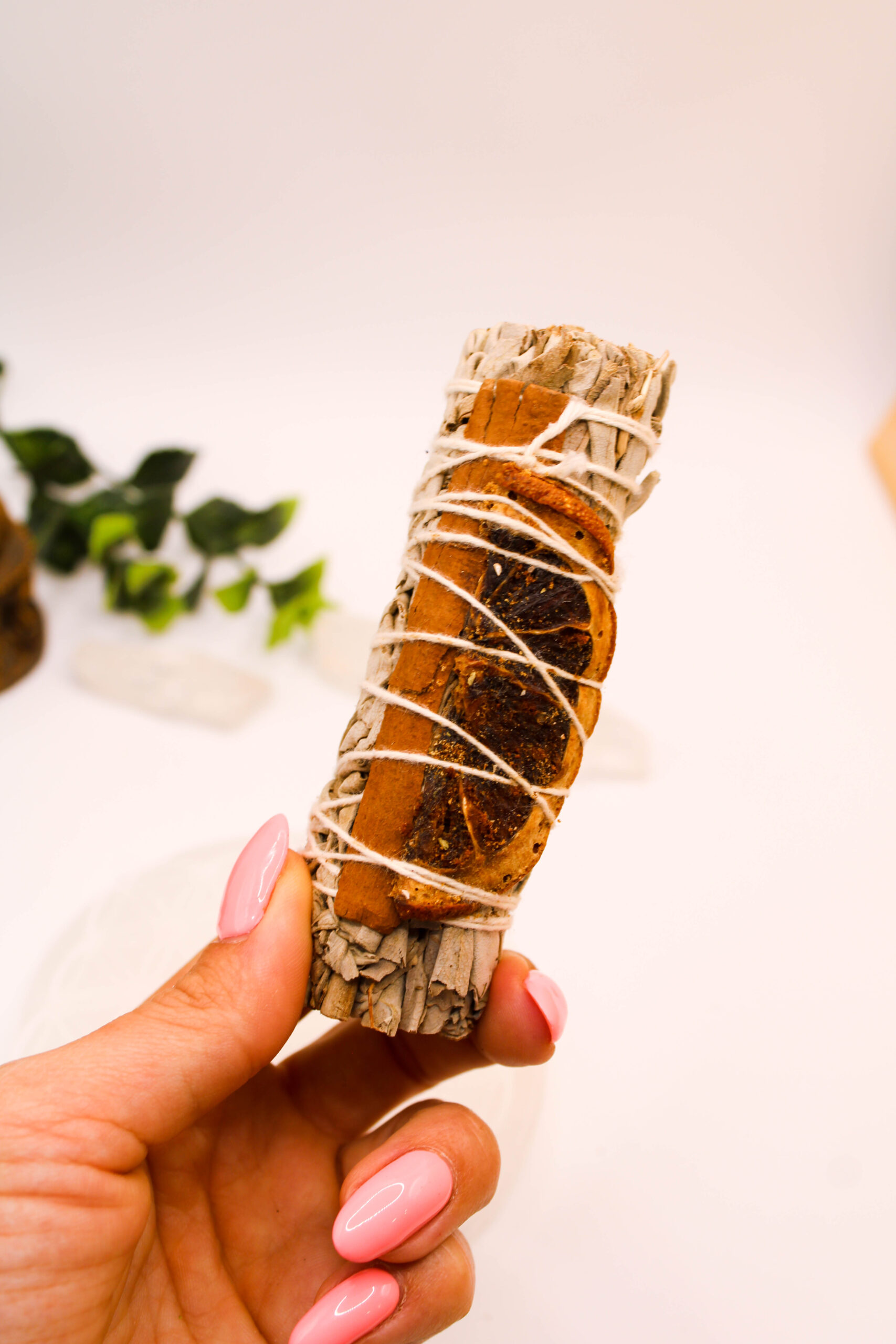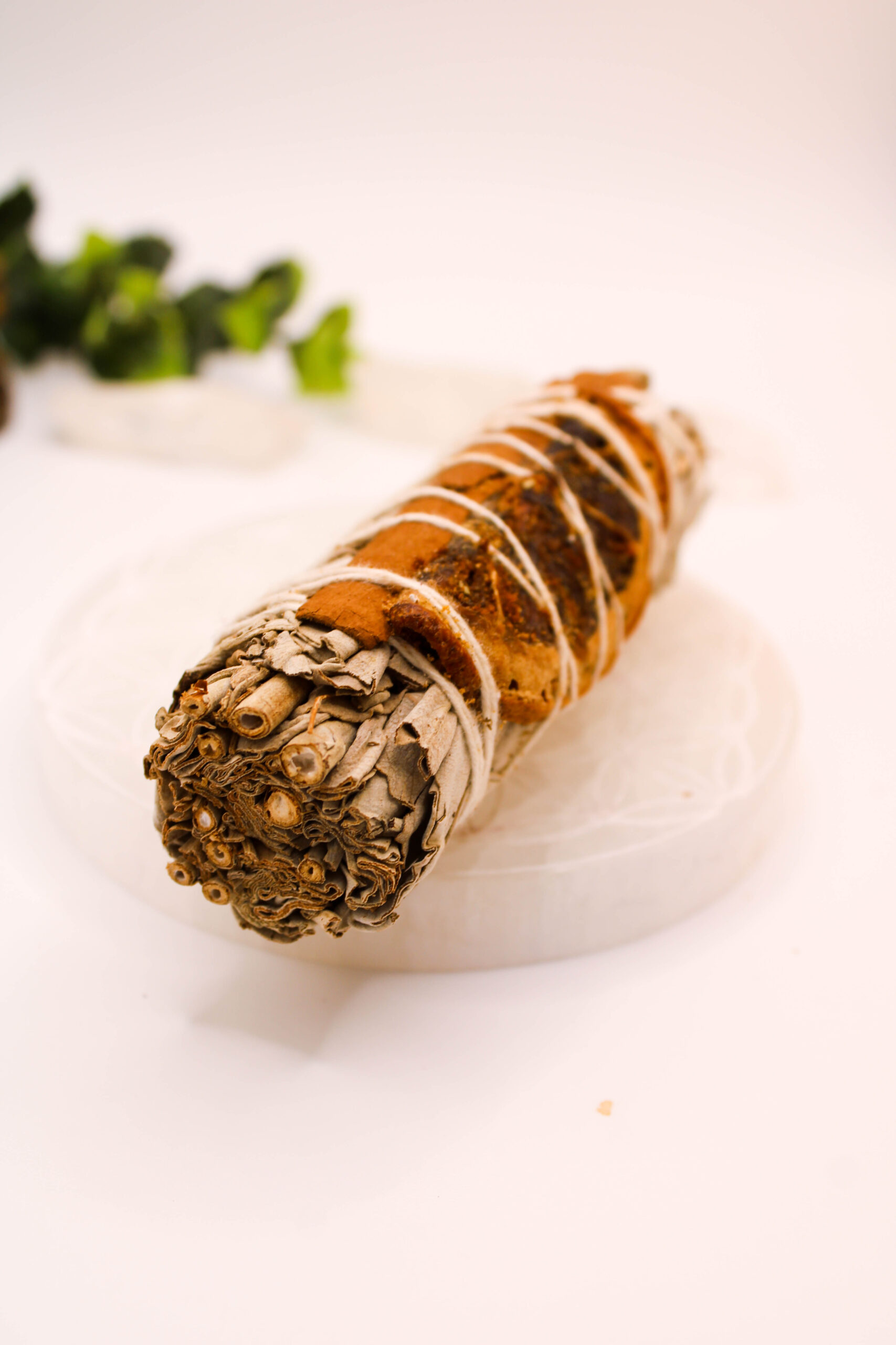 Este atadillo de Salvia Blanca, Canela y Naranja es una fusión poderosa y armoniosa de tres elementos sagrados que trabajan en sinergia para ofrecerte un ritual de limpieza, protección y renovación cargado de energía positiva.