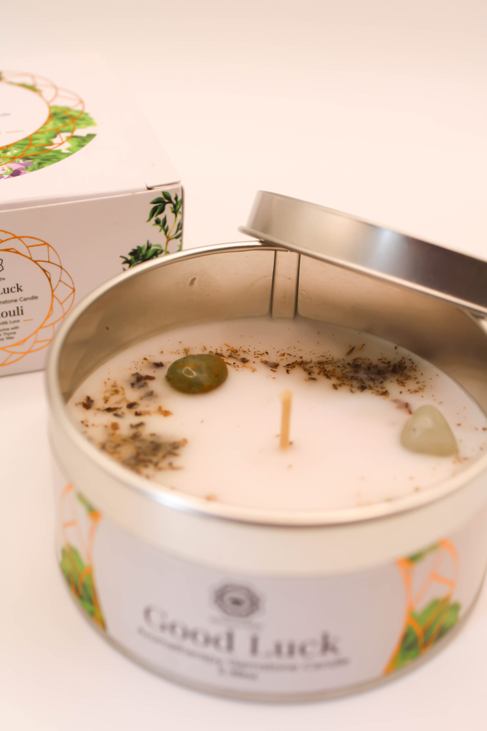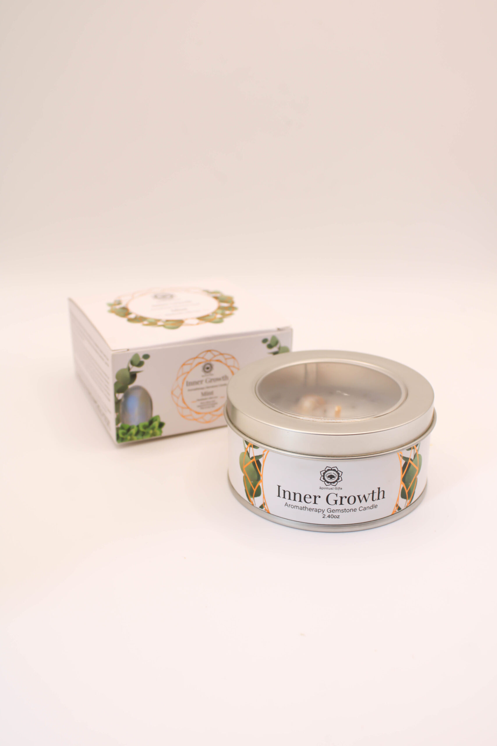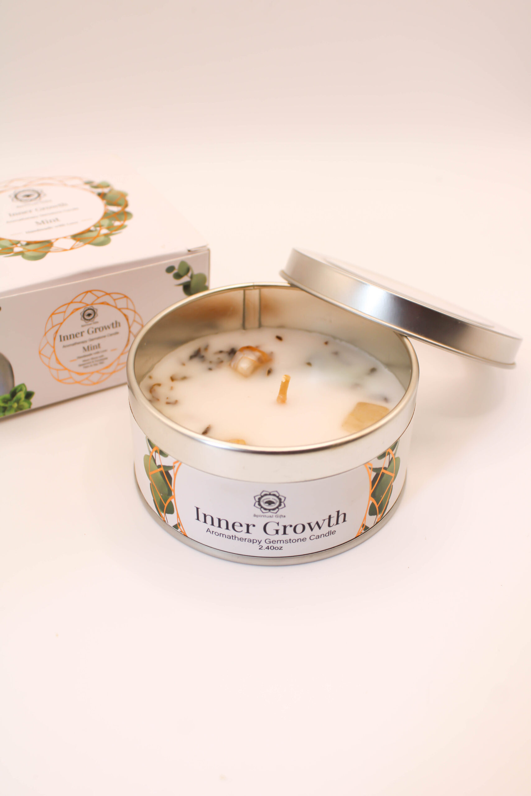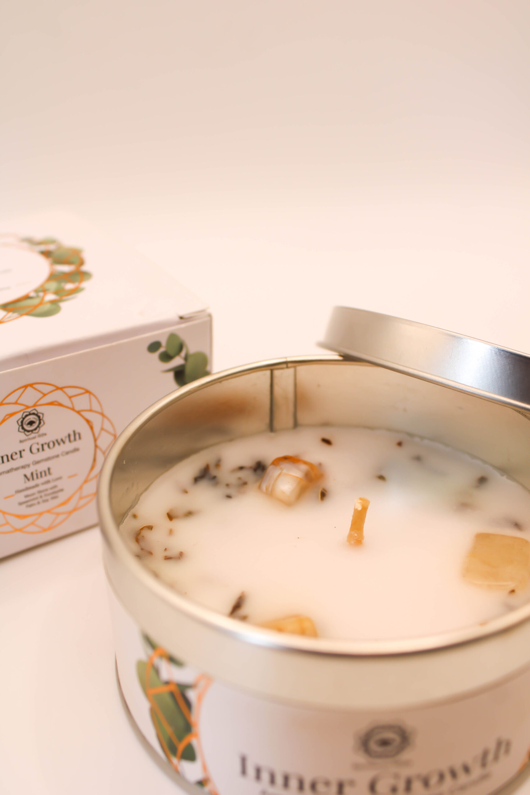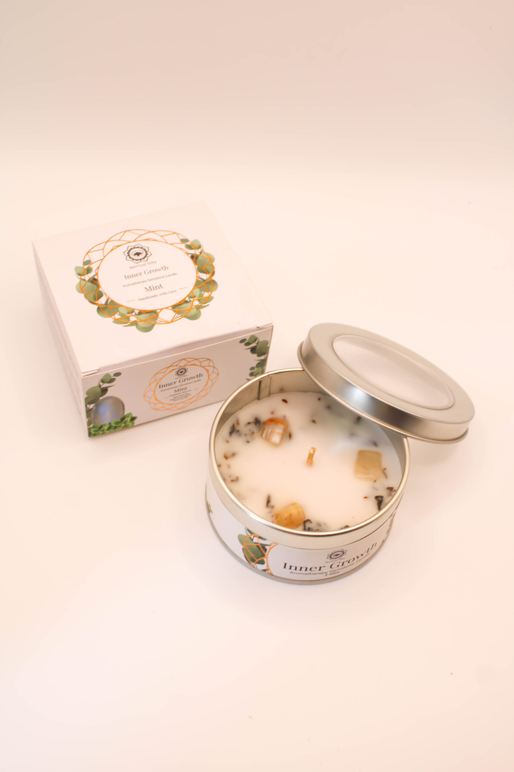 Vela Natural de Menta con Piedras Naturales – Frescura, Claridad y Renovación